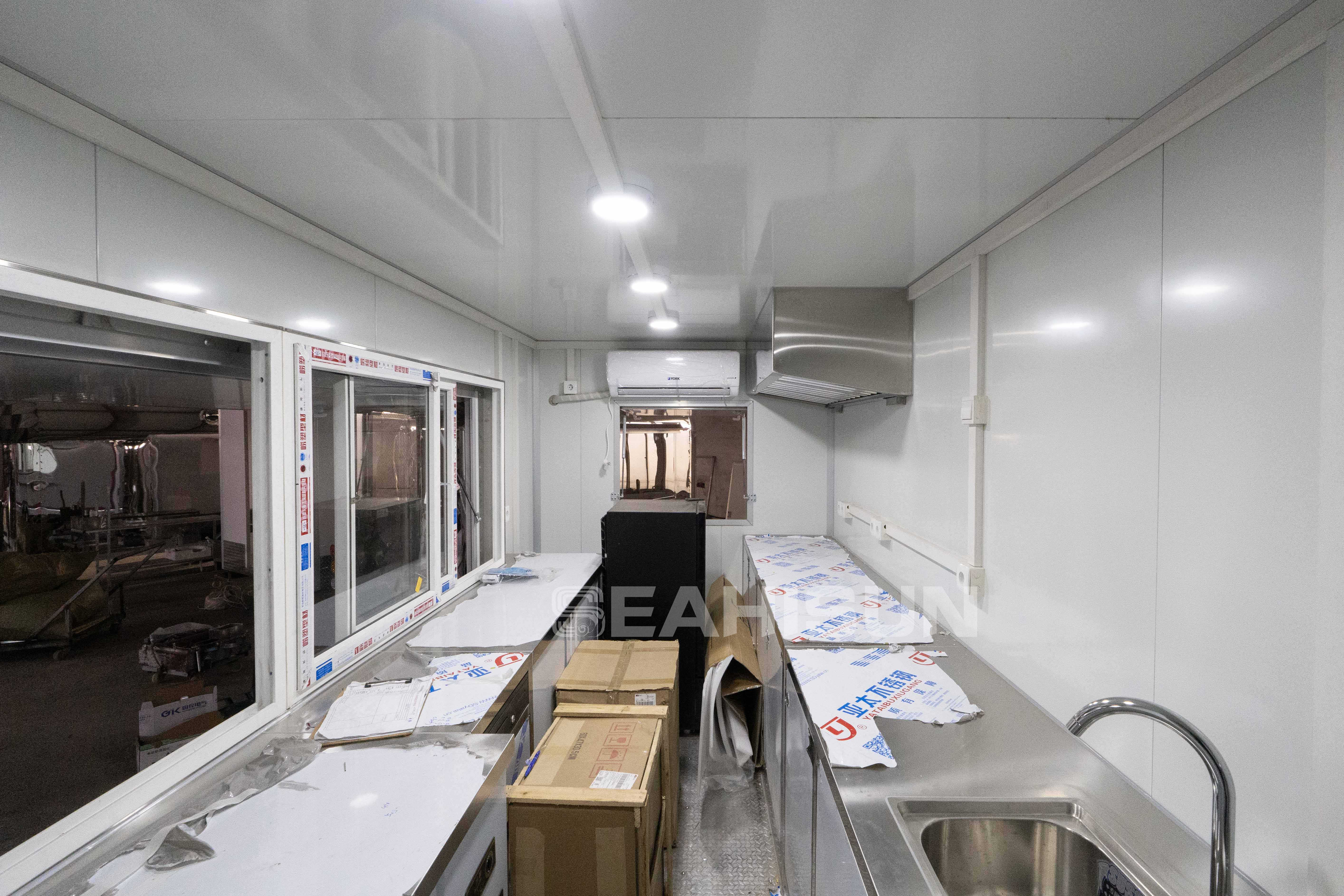 The interior can accommodate various cooking equipment to fulfill diverse business needs, including a refrigerator, coffee machine, fryer, griddle, exhaust fan, oven, and more.